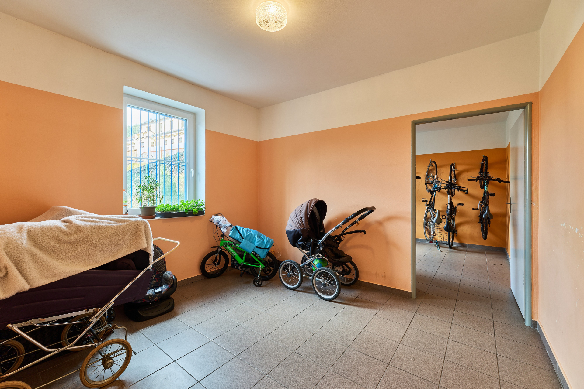 V domě jsou k dispozici společné prostory (kočárkárna, kolárna) v přízemí domu. Na patře je poté k dispozici sušárna společná vždy pro 3 bytové jednotky.
