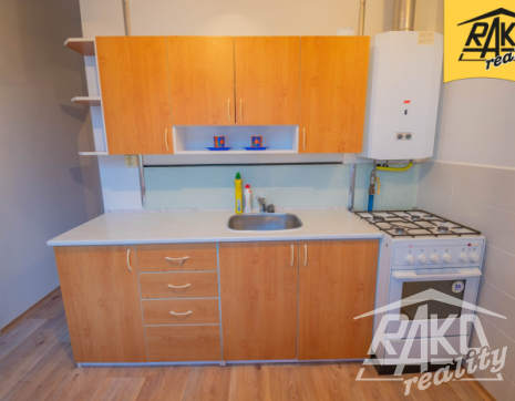 Byt se pronajímá částečně vybavený. V kuchyni je k dispozici kuchyňská linka, potravinová skříň, plynová karma, lednice a jídelní stůl se dvěma židlemi. Koupelna vanou, umyvadlem a přípojkou na pračku. V předsíni/chodbě je k dispozici větší vestavěná skříň a v obývacím pokoji postel.