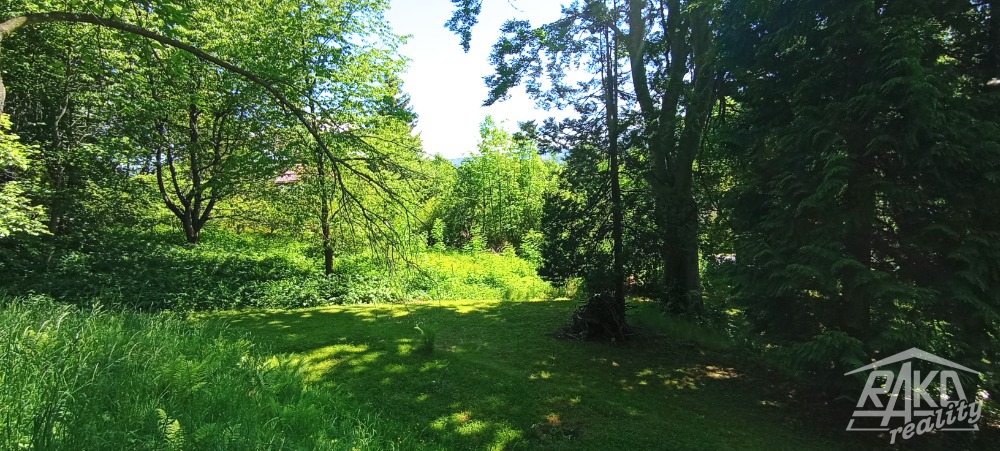 Rodinný dům, byť dostupný z přilehlé hlavní komunikace, je zasazen do okouzlující přírodní scenérie „Genius loci“ v podobě krásné zahrady se vzrostlými stromy v návaznosti na okolní zeleň. To vše navíc téměř bez přítomnosti přímého souseda. Příslušenství stavení představuje garáž, která je v návaznosti na dům, dále venkovní bazén, studna a dřevěný přístřešek na dřevo.
