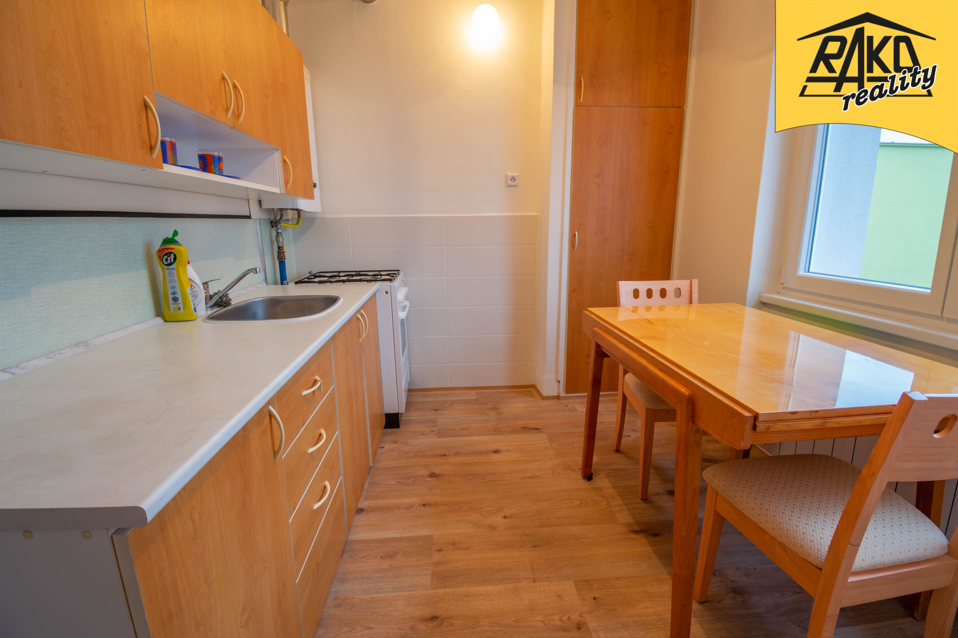 Dispozičně se byt skládá z předsíňky, rekonstruované koupelny, kuchyně a dvou samostatných pokojů. K bytu je dále k dispozici větší sklep o velikosti cca 6 m2. V domě je i sdílená kolárna a sušárna.