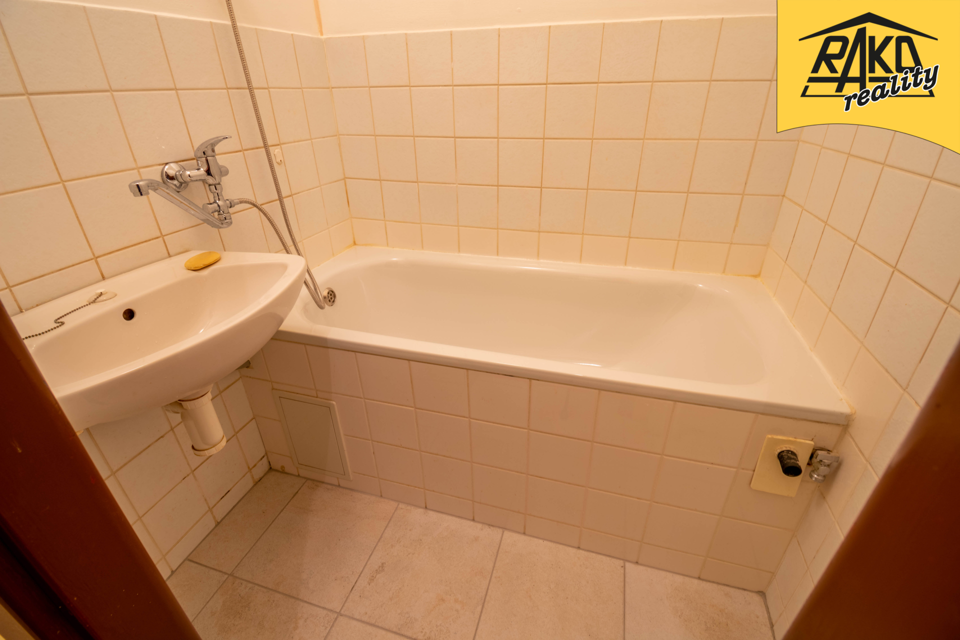 V celém bytě je položeno nové linoleum, v koupelně jsou stěny i podlaha obloženy keramickým obkladem.